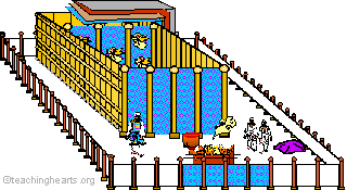 - East: (Exodus). The altar of sacrifice and laver in the outer court.